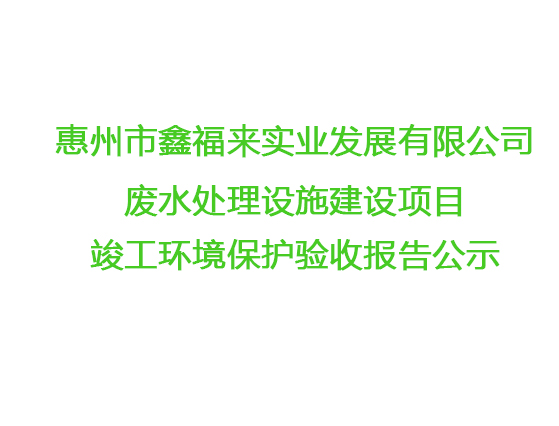 惠州市鑫福來實業(yè)發(fā)展有限公司廢水處理設施竣工環(huán)境保護驗收報告公示