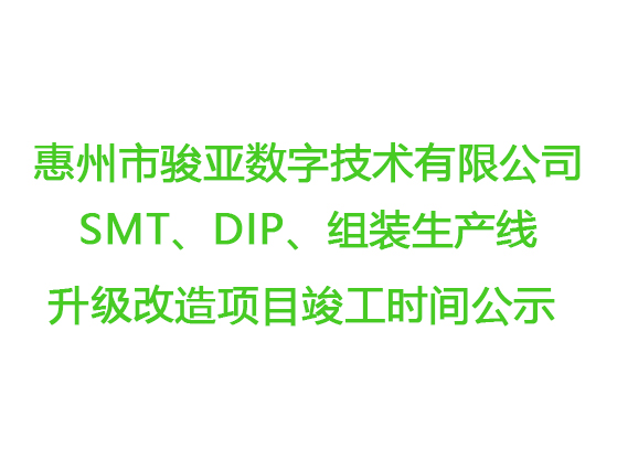 惠州市駿亞數(shù)字技術有限公司SMT、DIP、組裝生產(chǎn)線升級改造項目竣工時間公示