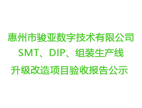 惠州市駿亞數(shù)字技術有限公司SMT、DIP、組裝生產(chǎn)線升級改造項目竣工環(huán)境保護驗收報告公示
